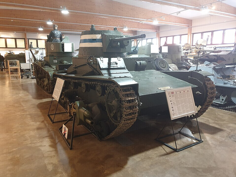 Vickers 6-ton tank at the Parola Tank Museum in Finland, equipped with the 37 mm gun. (Author: Juskevich, SourceCC BY 4.0). Swastikas have been censored.