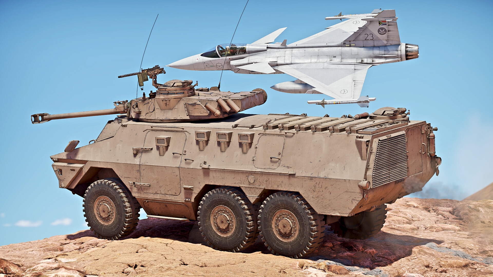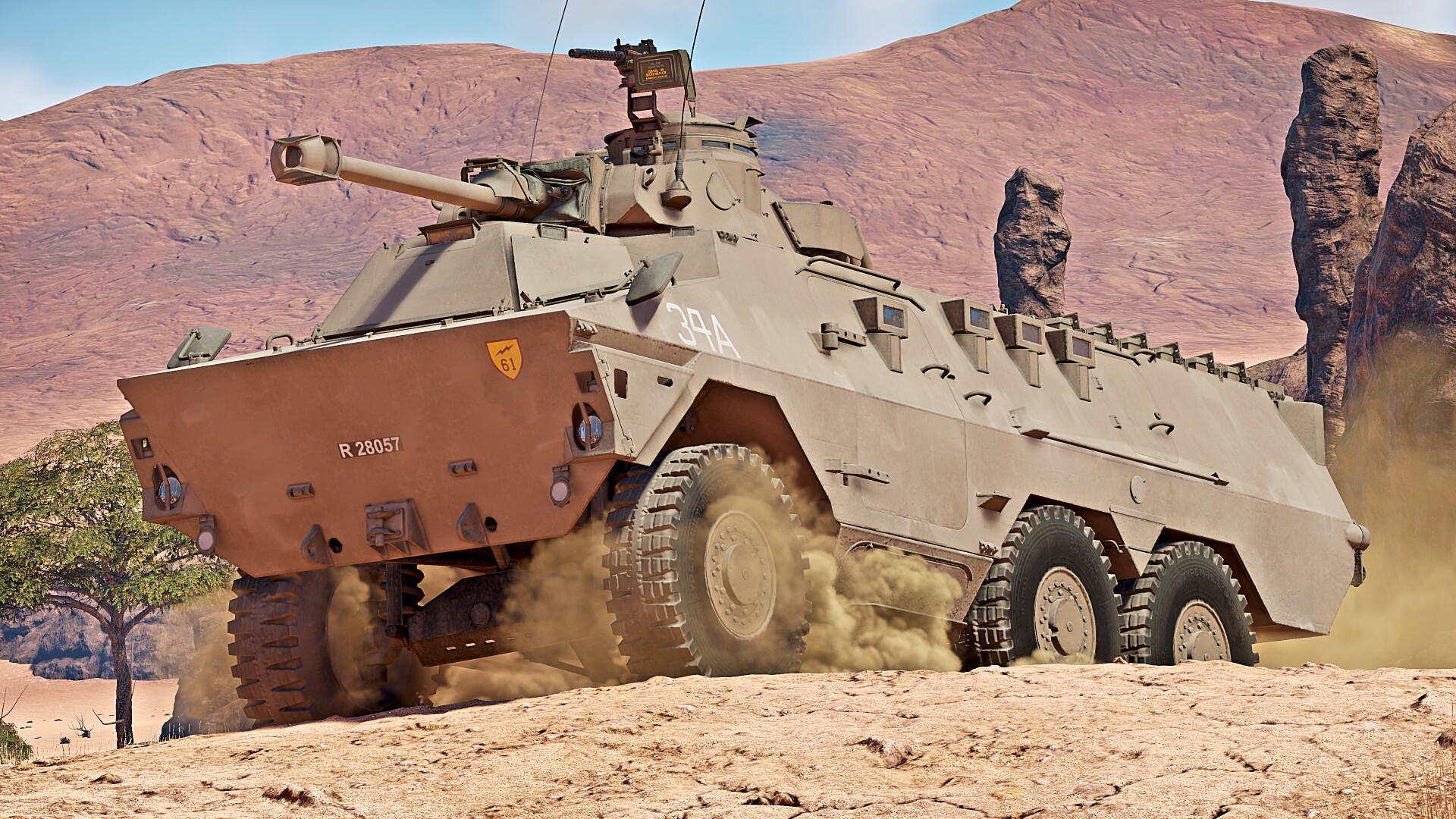 The Ratel 90 is an South African Light Tank in the British Tech tree. It is part of the Ratel family of fighting vehicles, a series of 6 wheeled IFV’s developed to replace the obsolete Alvis Saracen APC in South African Service. The Ratel 90 is a variant of the Ratel platform fitted with the turret of the Eland 90, and was utilized in the direct fire support role against enemy armour and fortifications. With a top speed of 65 mph, and a main armament that can penetrate 350mm of armour, it is a fairly decent light tank. However, with minimal armour protection, and a large silhouette, the Ratel 90 can be difficult to use effectively.