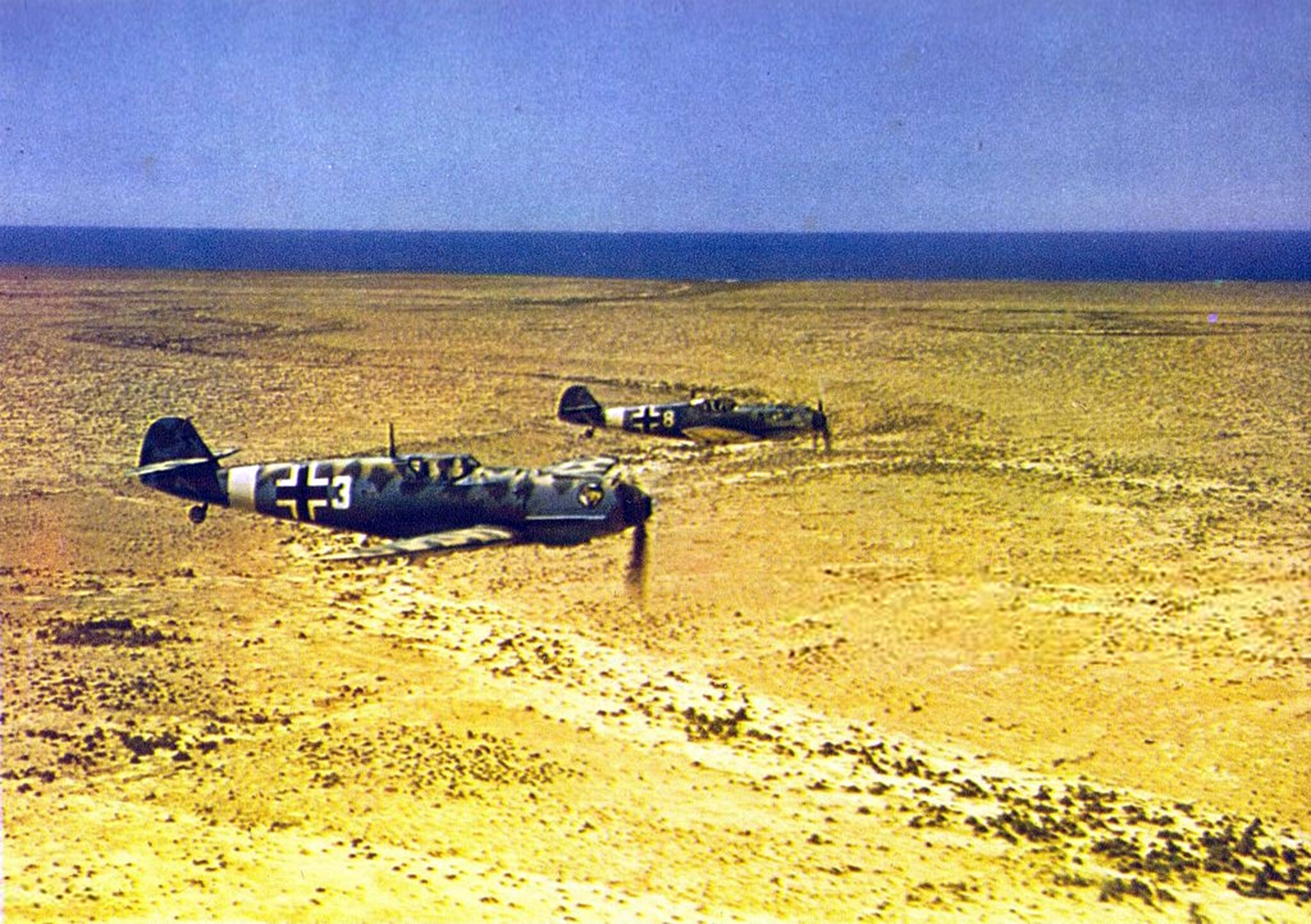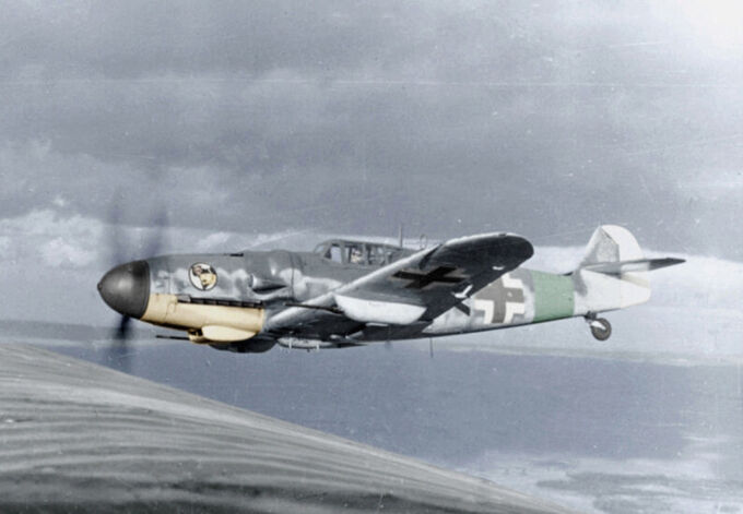 As the Luftwaffe began bombing the United Kingdom, Bf 109s became the bomber escort, a role they weren’t exactly designed for. In the English skies, RAF Spitfires and Hurricanes became major enemies of the Messerschmitts. British fighters were capable of out-turning the Bf 109, while the latter held an advantage in speed and climb rate. Another advantage of the Bf 109 was its engine’s direct fuel injection, as opposed to carburetted engines used in RAF aircraft. During negative G manoeuvres, British engines would cut out, while the Daimler-Benz ones wouldn’t; this gave Bf 109s an advantage when entering a dive.
