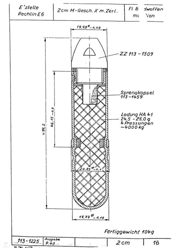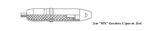 NOTE: Used against ground and air targets. It does not have a fuze; the filler is for self-destruction (Zerleger). In-game, it also explodes upon impact when shattering, like the Japanese 30mm APHE. Fired from L/50 barrels at 800/820m/s and L/90 barrels at 870m/s.