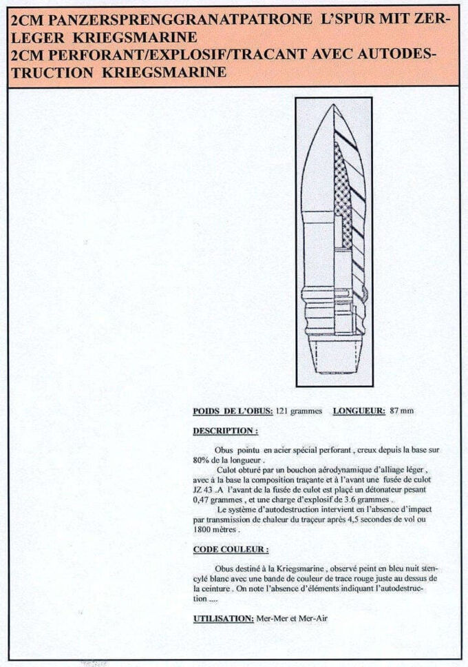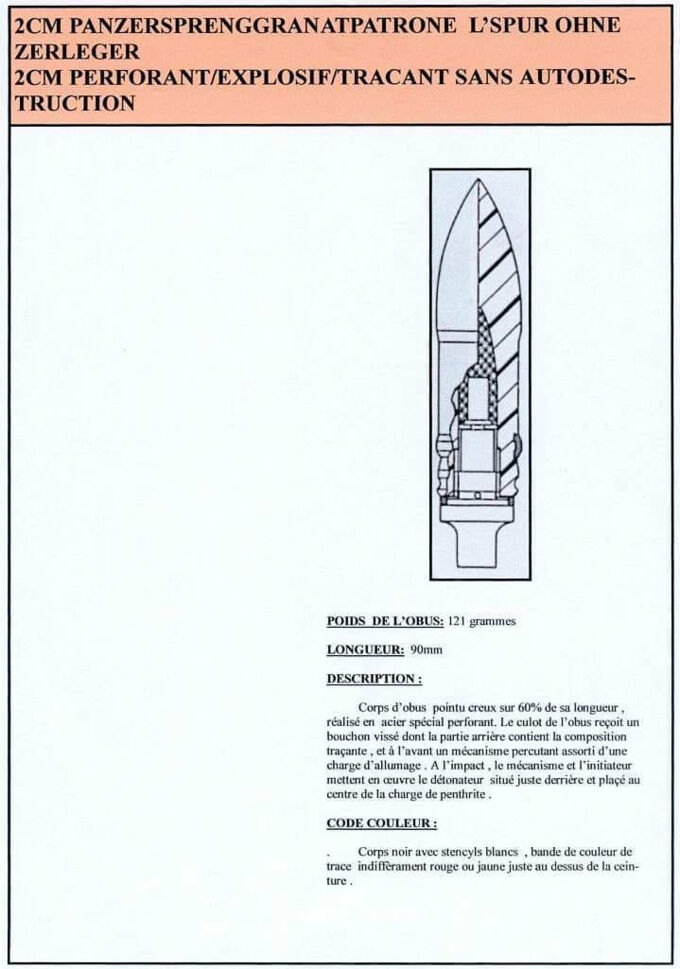 Note: Used against ground and air targets; no tracer to maximize the HE (H.5) and incendiary (zinc) mix. Fired from L/50 barrels at 880/900m/s and L/90 barrels at 950m/s.