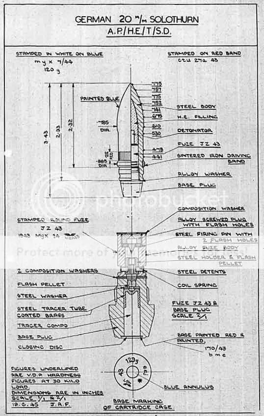 Note: Against Air and Ground targets, reduced tracer length for increased filler. The full feight of the H.5 and Zink mixture is 19g, not the pure He filler. Fired from L/50 barrels at 880/900m/s and L/90 barrels at 950m/s.