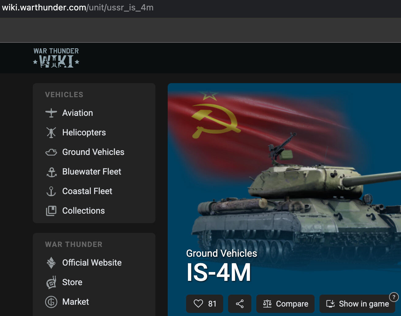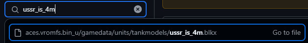 In this example, we will modify the IS-4M. First, find this vehicle on the War Thunder Wiki and look at its in-game ID in the browser’s address bar (in this case: ussr_is_4m).