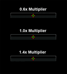 How the multiplier setting works can be seen near the top of the controls tab, inside the axis visualization window with the physical axis is indicated as a red diamond while the axis with the dead zone effect applied is indicated by the green diamond. With a multiplier lower than 1, moving the joystick to the edge will show a value lower than 100%, more specifically being the value that you have set multiplied by 100% (so for example 0.8 multiplier gives an 80% value). If the multiplier value is over 1, the axis will reach 100% before the joystick reaches the edge.