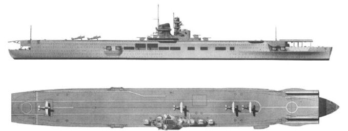 Germany had already toyed with the idea of possessing its own aircraft carrier during the First World War; this was to be called Ausonia, but it was never seriously pursued. However, shortly after the termination of the Treaty of Versailles, a new carrier project was initiated, based on the experience of other major powers such as Japan, the USA, and Great Britain, acquired through exchanges or espionage. Ultimately, not a single aircraft carrier was fully commissioned or built. The Graf Zeppelin was largely completed, but its construction was halted, while its sister ship, Aircraft Carrier B, was abandoned during construction. During the design of the accompanying aircraft, some were built specifically for the project, such as the Arado 197. However, this met with little approval from the Luftwaffe, which is why modifications of existing aircraft like the Bf 109 T, the Ju 87 C or T, or the Fi 167 found more favor.