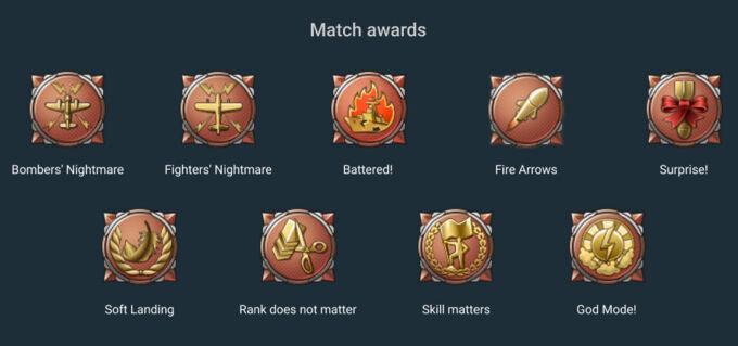 - Hero of the Sky — destroyed the most aircraft in Air Battles (not fewer than 12 enemy aircraft);