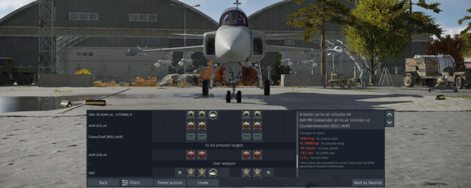 With the release of the “It’s fixed No. 51” update, the game features an editor for suspended weaponry, a mechanic allowing players freedom of choice of weaponry to bring into battle. This feature is primarily found on higher rank aviation and helicopters, although some lower rank examples exist as well, with more being added in every major update.