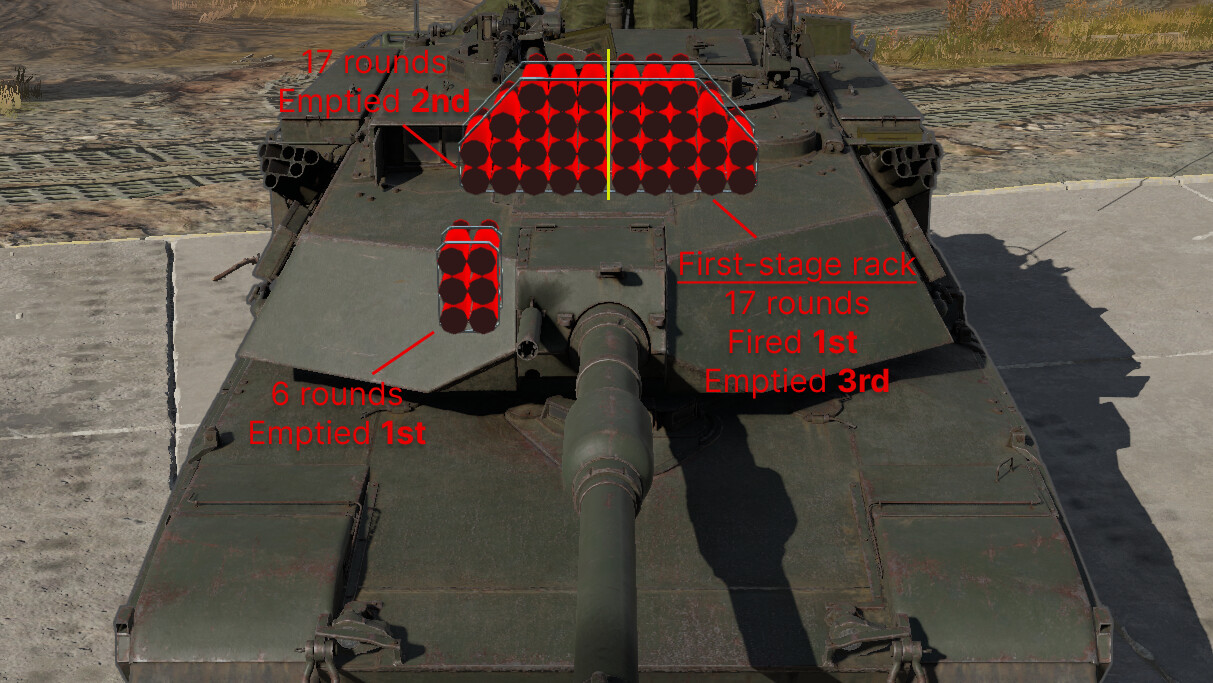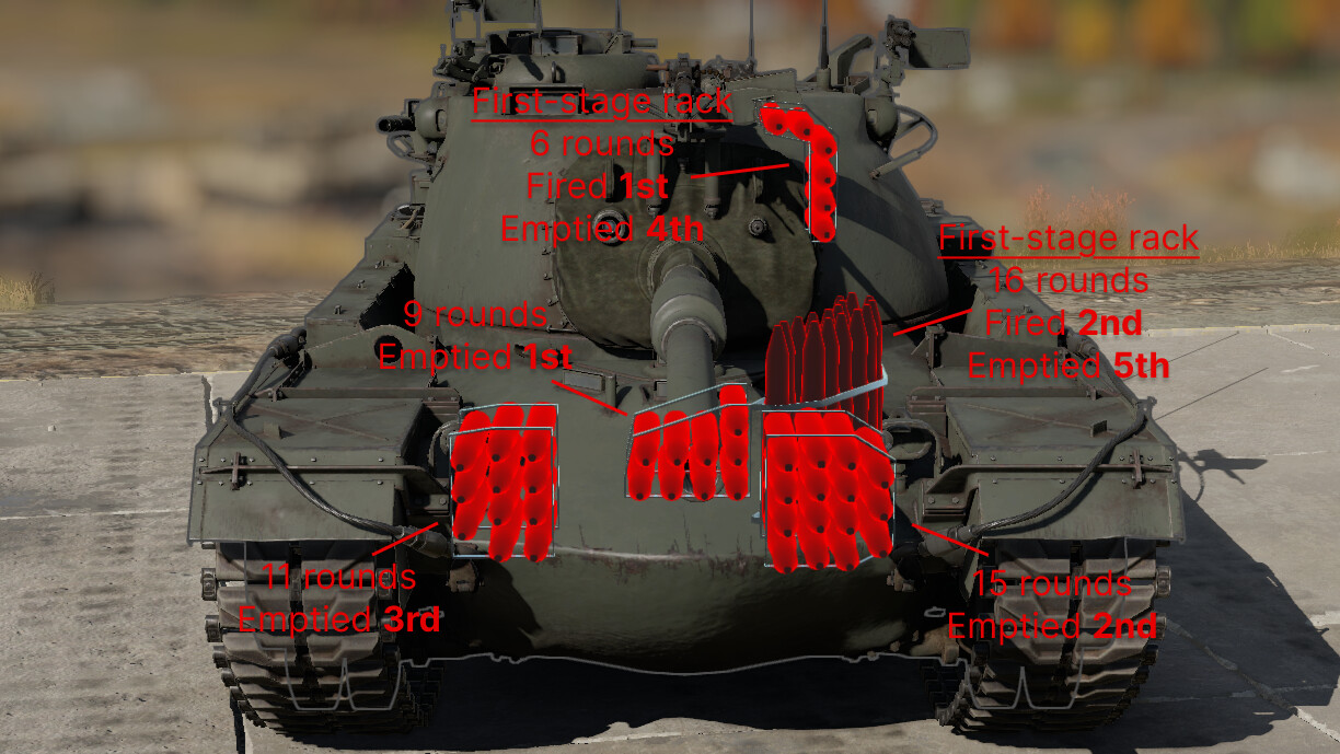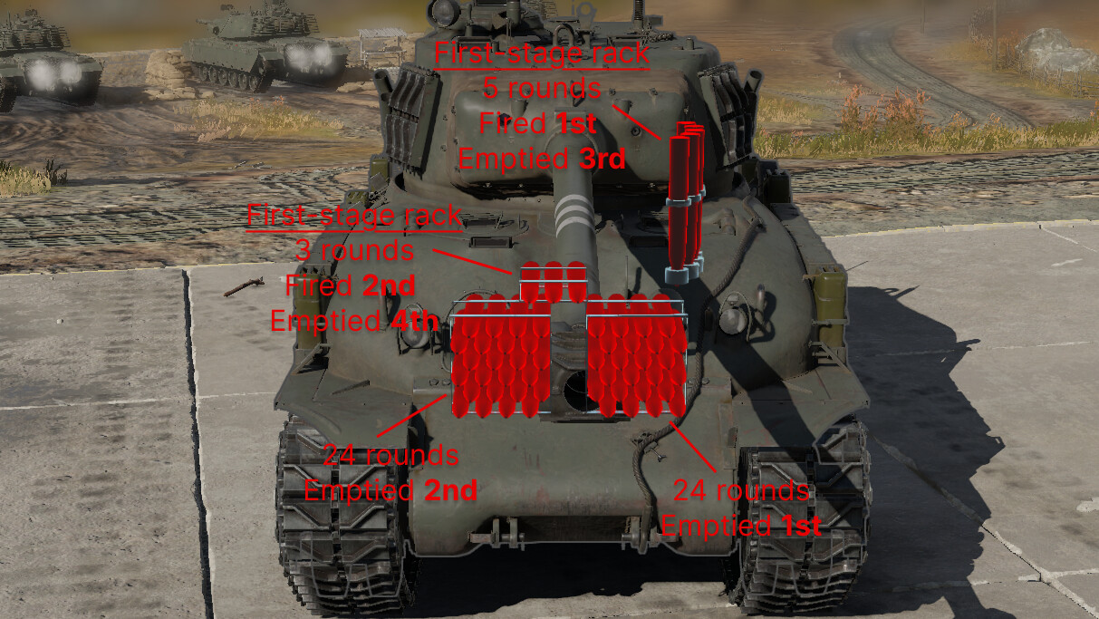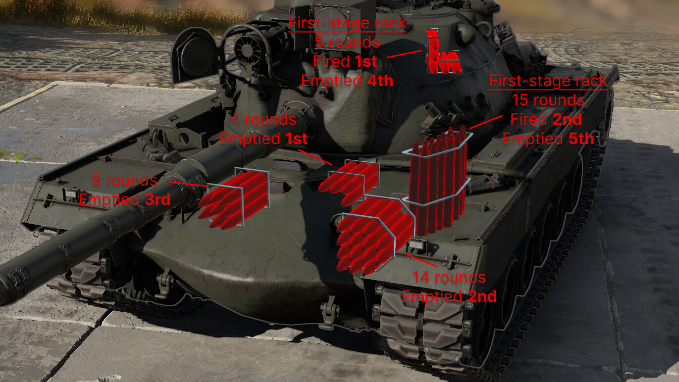 The M48A2's ammo racks are similar to the M48A1, but with 4 extra shells in the main first-stage rack. Bring up to 28 shells to keep only the first-stage racks, or up to 21 shells to also remove the turret rack.