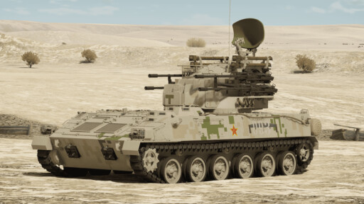 Introduced in Update "Red Skies" along with the PGZ09, the PGZ04A is a unique SPAA vehicle with a gun-missile armament. The layout of its turret quite resembles the Italian SIDAM 25, but unlike the radarless SIDAM it has a search radar mounted on the top that makes it much easier to acquire targets, as well as thermal optics for easier spotting. The quadruple 25 mm cannons previously seen on the ZSD63 are bored-out derivatives of the Soviet Shilka's guns with a slower rate of fire, higher muzzle velocity, and greater armour penetration. Although the PGZ04A's electronics, mobility, and ground attack capability are inferior to the newer PGZ09, its main selling point comes from a quartet of HN-6 MANPADS launchers mounted right above the guns. The HN-6 is slightly better in performance than the common Stingers used by contemporary SPAA and forces enemy aircraft to stay on their toes even outside of cannon range.