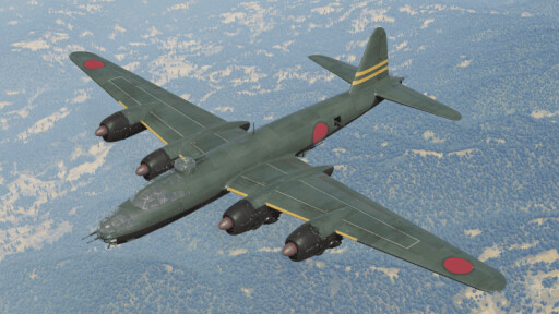 It was introduced in Update 1.29. The Renzan is a formidable machine with six powerful 20 mm Type 99 Model 2 Mk 5 cannons to deter enemy planes. It can withstand multiple attacks with its strong defensive armament, high ammo count, and decent armour (for a Japanese aircraft). However, it has a low bomb load of 2,400 kg, making it the least effective heavy bomber in-game for ground attack. The Renzan can still pose a threat in formation or with allies. Unlike other heavy bombers like the Lancaster B Mk I, the Renzan can defend itself without fighter escort, to some extent. Another distinctive feature of the Renzan is its four-engine design. It is one of the few Japanese planes with four engines, along with the G5N1 and the premium B-17E Flying Fortress. This enhances the Renzan's survivability and chances of returning to base.