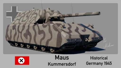 The Maus was first introduced in Update 1.47 "Big Guns" as a main tree vehicle, but was later moved to gift vehicle status and is available to begin researching for a limited time annually. The Maus is the epitome of a “super-heavy” tank, sporting one of the thickest raw armour values in the game, while also being awfully slow. However, being positioned between late WWII and early Cold War vehicles, the Maus is sandwiched between two extremes; it is capable of holding its own against its contemporaries but struggles against more modern vehicles with tools that can negate its thick steel armour. As such, situation awareness is a must when using the Maus, as careless positioning may reduce the Maus into a big pile of scrap metal.