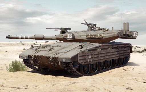 The Ra'am Sagol was introduced in Update "Alpha Strike". In the game, its APS informs the commander of the direction from which the tank is being illuminated by an ATGM launch system, and the player can then make their own decision about manoeuvring and firing smoke. In all other respects, the tank is identical to its other counterparts, possessing the familiar 120 mm gun capable of penetrating most tanks, and decent turret protection. It is not the best in mobility compared to other tanks, and the front-mounted engine, while allowing it to withstand hits to the frontal part of the hull, increases the risk of engine failure and fire.