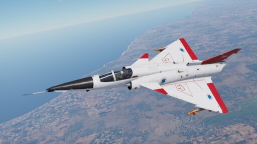 The Kfir C.2, introduced into the game in Update "Wind of Change" as a reward for the "Battle for Arachis" event, shares its characteristics with the Mirage 5 lineage as a fighter-bomber, capable of performing in an air-to-air or air-to-ground role with its avionics and flight performance. Air-to-air performance is benefitted by the Kfir C.2's maneuverability, especially its turn rates, to get nose onto target for guns or missiles, though missile availability is hindered to just two IR seeking missiles. For air-to-ground, the Kfir C.2's ability to carry a total of eight 1000 lb bombs allows it to be able to destroy a base in air realistic mode or several armoured ground targets in ground battles. A full suite of ballistic computers allow for CCIP and CCRP usage that allows Kfir pilots to get their payload onto target as accurately as possible. The versatility in the Kfir's roles ensures that players are able to use it in response to different combat situations over the course of a match.