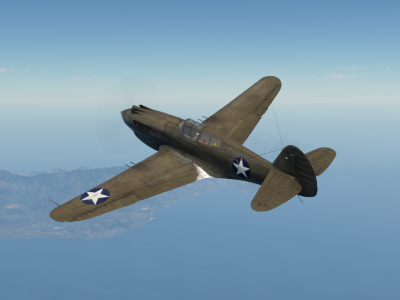 The P-40C is nearly identical in looks to its successor, the P-40E. However, the distinguishing part of the P-40C are the nose-mounted .50 cal machine guns. This allows you to have a denser cone of fire in contrast to other US aircraft at this battle rating.