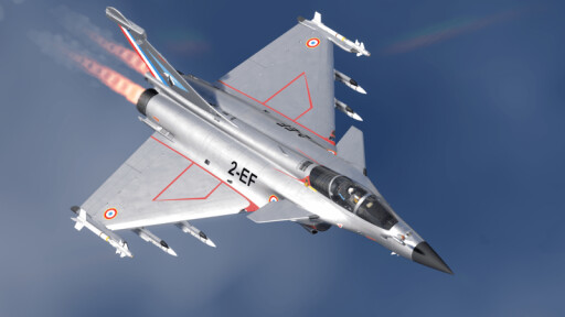 The Rafale C F3 was introduced in Update 2.43 "Storm Warning". It offers excellent flight performance and a wide selection of smart weapons. Its delta wings and canards make it highly responsive during tight maneuvers, and its powerful engines quickly restore energy after turns. Notable smart weapons include the MICA-EM radar-guided missiles and the AASM HAMMER bombs, which have multiple guidance options. However, the aircraft has two drawbacks: a limited number of Matra R550 Magic 2 infrared-guided missiles and a low amount of flares.