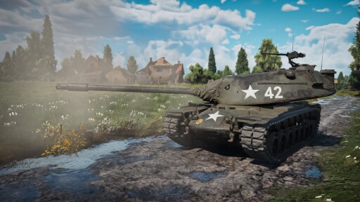 Introduced alongside the American ground tech tree in Update 1.45 "Steel Generals", the M103 is armed with a monstrous 120 mm gun. Thanks to its powerful 120 mm gun with HEAT rounds, the tank can engage any target it encounters. However, the entire gameplay with the M103 revolves around its gun, as its decent armour is more of a bonus than an advantage, given that many opponents have HEAT and APDS rounds capable of penetrating its frontal armour without much difficulty. In such situations, the tank's rounded armour shapes with varying thickness often lead to enemy shots ricocheting. Furthermore, the M103's mobility is a weak point, as it struggles to keep up with most allies.