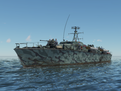 The PT-811 was introduced during Update 1.95 "Northern Wind" as a reward for the 2019 Operation F.R.O.S.T. event. Performance-wise, she is very similar to her half-sister, the PT-810, being slightly smaller and faster, as well as more durable due to her steel hull. Much like the PT-810, the PT-811 features a pair of 40 mm Bofors and twin 20 mm Oerlikon autocannons as her main armament, giving her devastating firepower against simple model ships and aircraft. In addition, she retains the extremely powerful Mk.16 torpedoes that can threaten even battleships. However, even with increased survivability, the PT-811 will regularly face destroyers and large-calibre autocannons, both of which can easily destroy the boat in a few hits.