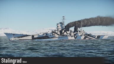 Stalingrad was introduced in Update 2.53 "Line of Contact". The battlecruiser is characterized by an excellent main battery, which, despite its relatively modest caliber, features high-quality ammunition and a high rate of fire. The ship also demonstrates good mobility and capable secondary armaments. However, its anti-aircraft defenses are weak and limited, and its armor protection is insufficient, making the ship vulnerable.