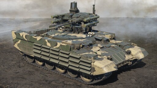 The BMPT was introduced in Update 2.53 "Line of Contact". The "Terminator" lives up to its name with two 30mm 2A42 autocannons that have an excellent rate of fire and decent AP rounds; four 9M120-1 "Ataka-T" ATGMs for engaging heavily armored targets; two AG-30M grenade launchers for clearing obstacles; an unmanned combat module; and a high-resolution thermal imager. All of these features are built on the T-90 chassis, which provides solid protection and mobility. Compared to the premium variant, it differs in having a five-person crew and a different chassis. Drawbacks of the BMPT include its limited number of ATGMs, suboptimal autocannon ammunition, and low reverse speed.