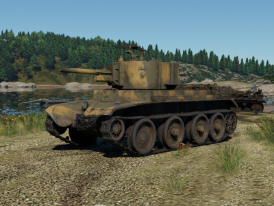 Like the BT-7 before it, it is very fast while having light armour, which at its BR can be penetrated by virtually all vehicles, meaning it must rely on stealth and speed even more than its predecessor. It comes armed with the much more powerful 76 mm F-32 cannon, which has higher penetration and explosive mass, allowing it to easily knock out larger tanks from the side with a single shot. It also comes with a pintle-mounted light machine gun, a rarity among early Soviet tanks, allowing it slightly more AA firepower.