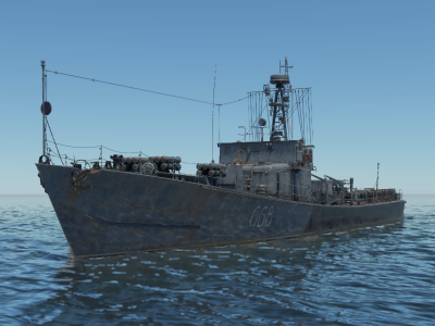 This vessel was introduced during the Update "Winged Lions" as a reward for the 2021 Operation W.I.N.T.E.R. event. In the game, it acts as firepower support for small boats and PT Boats. With its twin 25 mm autocannons and 45 mm autocannon, it can easily destroy lightly armoured targets. The ship is also capable of carrying coastal mines, allowing it to effectively block certain key areas.