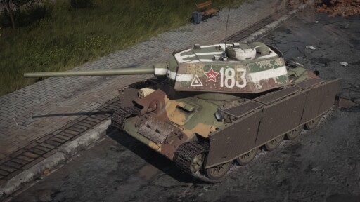 The T-34-85 ('45) was introduced in the Update 2.47, "Leviathans". In terms of appearance and characteristics, this tank resembles other T-34-85 versions in the USSR tech tree, particularly the T-34-85E, due to the aforementioned screens. In addition to the extra protection, the tank features the quick-recognition stripes that were typical of the Berlin operation. It remains a fast tank with weak armor, but it has a powerful and accurate 85mm gun capable of penetrating nearly all tanks at its rank with precise fire.